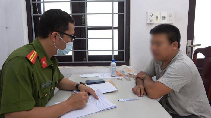 | Diễn viên Hữu Tín lúc bị bắt. Ảnh: Công an cung cấp |