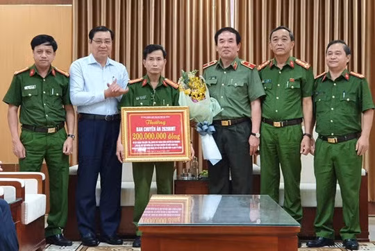Sáng 14-10, Chủ tịch UBND TP Đà Nẵng Huỳnh Đức Thơ đã biểu dương và thưởng 200 triệu đồng cho Công an TP Đà Nẵng về thành tích phá đường dây đánh bạc qua mạng hơn 10.000 tỷ đồng (ảnh).
