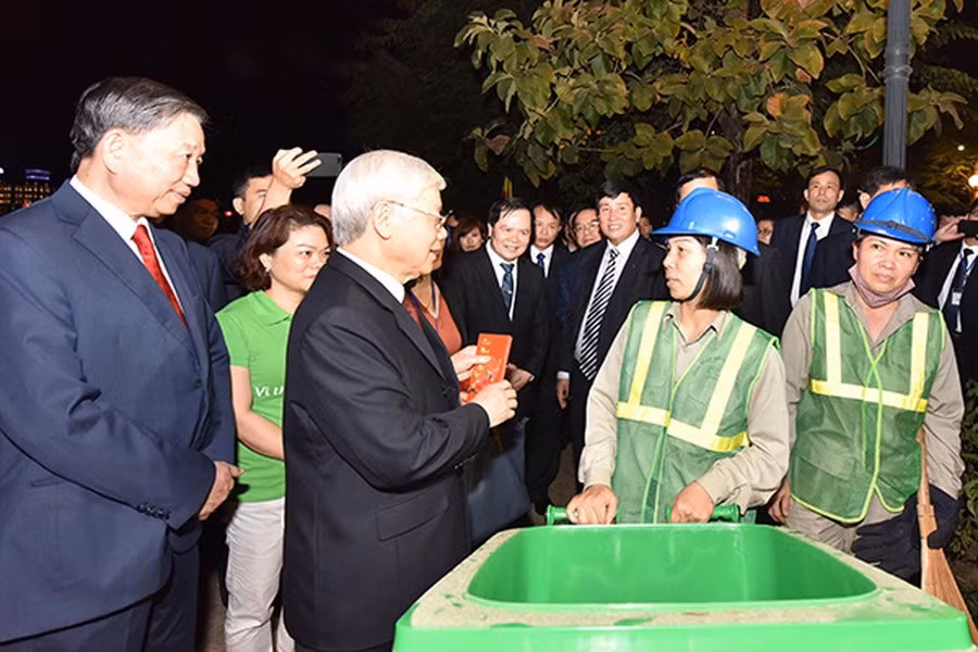 ANTD.VN - Tổng Bí thư Nguyễn Phú Trọng luôn dành sự quan tâm, tình cảm đặc biệt đối với Thủ đô Hà Nội. Hằng năm, mỗi dịp Tết đến Xuân về, Tổng Bí thư Nguyễn Phú Trọng đều dành thời gian về thăm, chúc Tết Đảng bộ, chính quyền và nhân dân Thủ đô với những hình ảnh đặc biệt thân thương, gần gũi.
