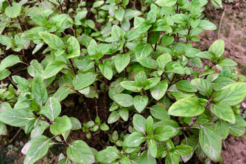 Ông Lộc chỉ tay về phía trước, cạnh vườn tháp: “Kia kìa, người ta bảo tôi là trồng thêm phía bên kia nữa, nhưng cô thấy đấy, tôi “gần đất xa trời” rồi, sức đâu mà kham nổi. 3 luống để trồng húng, một vạt trũng ngập nước để trồng rau ngổ, vài bụi tía tô, 2 luống kinh giới, chút ít mùi tàu, thêm luống hành hoa… Còn lại thì kệ cho rau lang mọc đầy, thêm ít dọc mùng cho đỡ phải chăm sóc”.