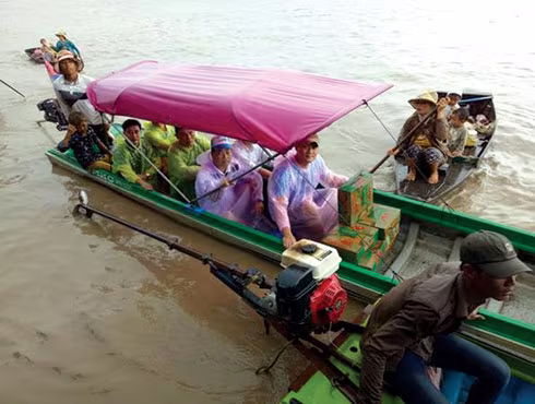 Phải nói rằng, chặng đường từ bến tàu Tonle Sap Lake vào đến nơi bà con ở trong Biển Hồ chỉ mất khoảng 40 phút đồng hồ, nhưng thực sự với chúng tôi là hành trình “bão táp”. Trên đường đi, mưa to, gió giật mạnh, đôi lúc những tưởng ghe chở chúng tôi sắp lật. Tuy nhiên, với quyết tâm muốn chia sẻ một phần khó khăn với bà con người Việt đang sống ở Biển Hồ, chúng tôi đã mang được quà đến nơi an toàn.