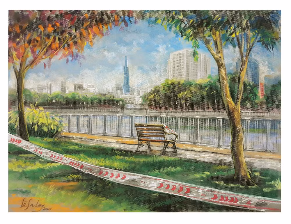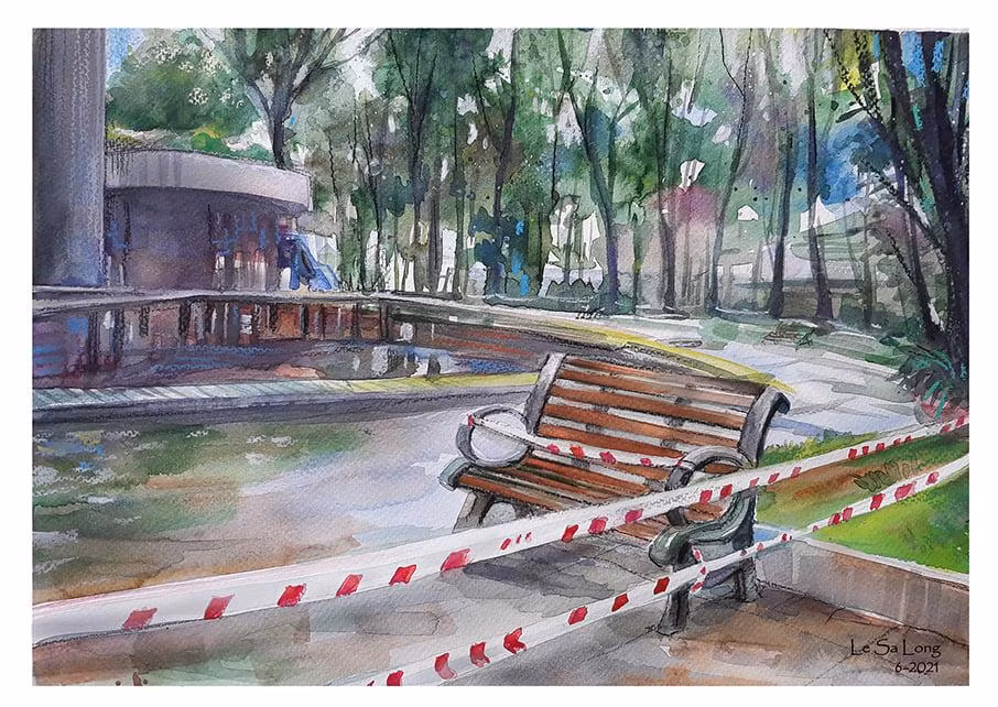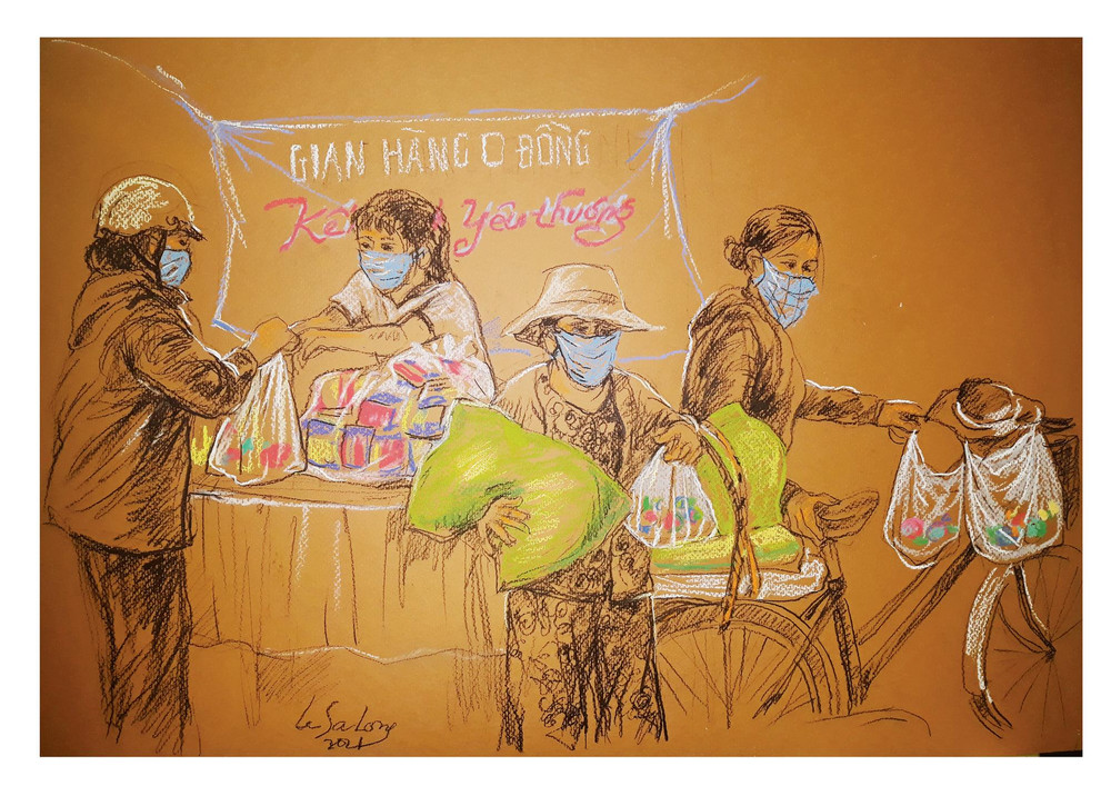 ANTD.VN - Qua các nét vẽ của mình, họa sĩ Lê Sa Long đã chuyển tải tới người xem tình người Sài Gon trong đại dịch. Đó là một thành phố vắng bóng người trên đường phố, nữ bác sĩ vắt sữa nuôi bệnh nhi mắc Covid, những gian hàng 0 đồng...