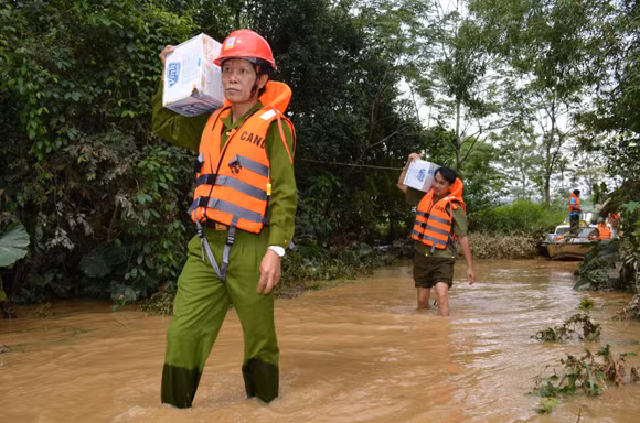 Ở đâu có lũ, các chiến sĩ Công an lại có mặt, lực lượng Công an huyện Nghĩa Hành