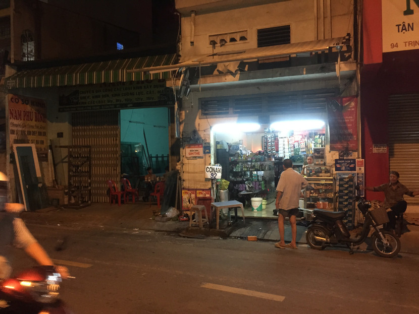 13h chiều 26-1 Giang nằm ngủ mơ màng tại chốt trực thì bên tai lại văng vẳng lời chửi mắng. Thức dậy, Giang đi bộ đến tiệm tạp hóa quen gần đó lấy 1 con dao xếp có gắn lưỡi lam, rồi cầm trong tay.