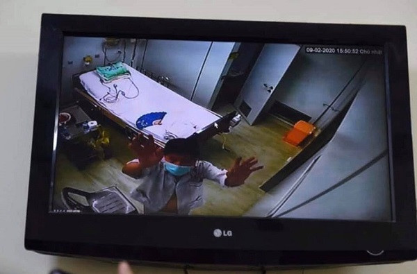 Hình ảnh người bệnh là Việt kiều Mỹ nói chuyện điện đàm với Thứ trưởng Bộ Y tế từ phòng cách ly điều trị corona