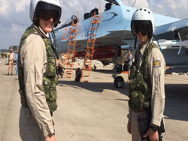 Hầu hết người dân Syria đều tỏ ra niềm nở, thân thiện với binh lính Nga. Trong ảnh là các sĩ quan không quân Nga tại căn cứ ở Latakia