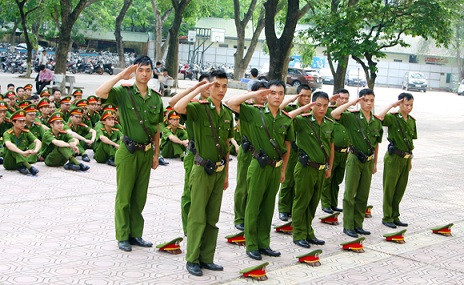 Đội tuyển CAP Giảng Võ với động tác đặt mũ chào bên phải