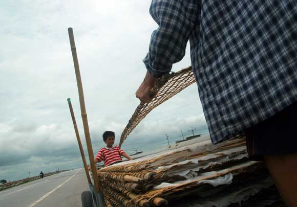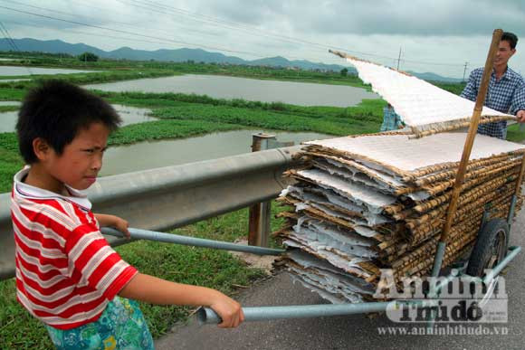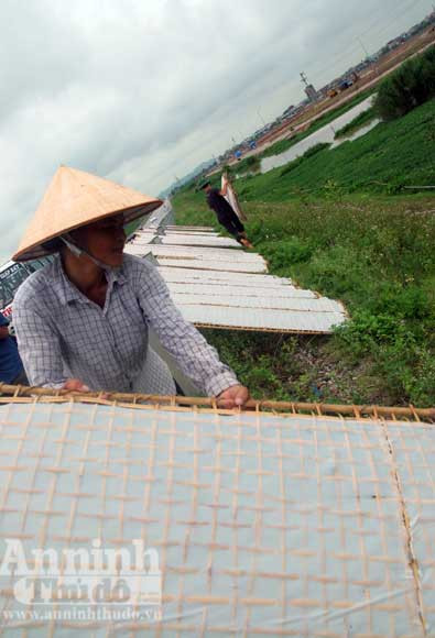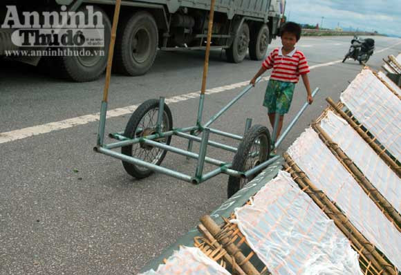 Phơi bánh đa trên quốc lộ 1A