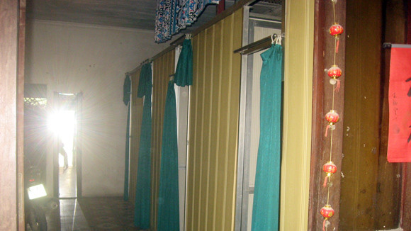 Lững thững vào “tham quan” quán, tôi thực sự choáng. Không khí cả ngôi nhà nóng hầm hập, bởi mái lợp xi măng không có hệ thống thông gió. Quần áo lót của phụ nữ treo la liệt lối đi. Nhưng kinh nhất là khu vực để khách “uống” cà phê. Chật chội, mỗi gian chừng 2 mét vuông bố trí 2 chiếc ghế da, 1 quạt treo tường và 1… cuộn giấy ăn. “Cửa” ra vào là tấm ri-đô khá dày. “Sao uống cà phê lại dùng đến giấy ăn làm gì?”, tôi hỏi Liên. Cô gái trẻ tủm tỉm quay đi.