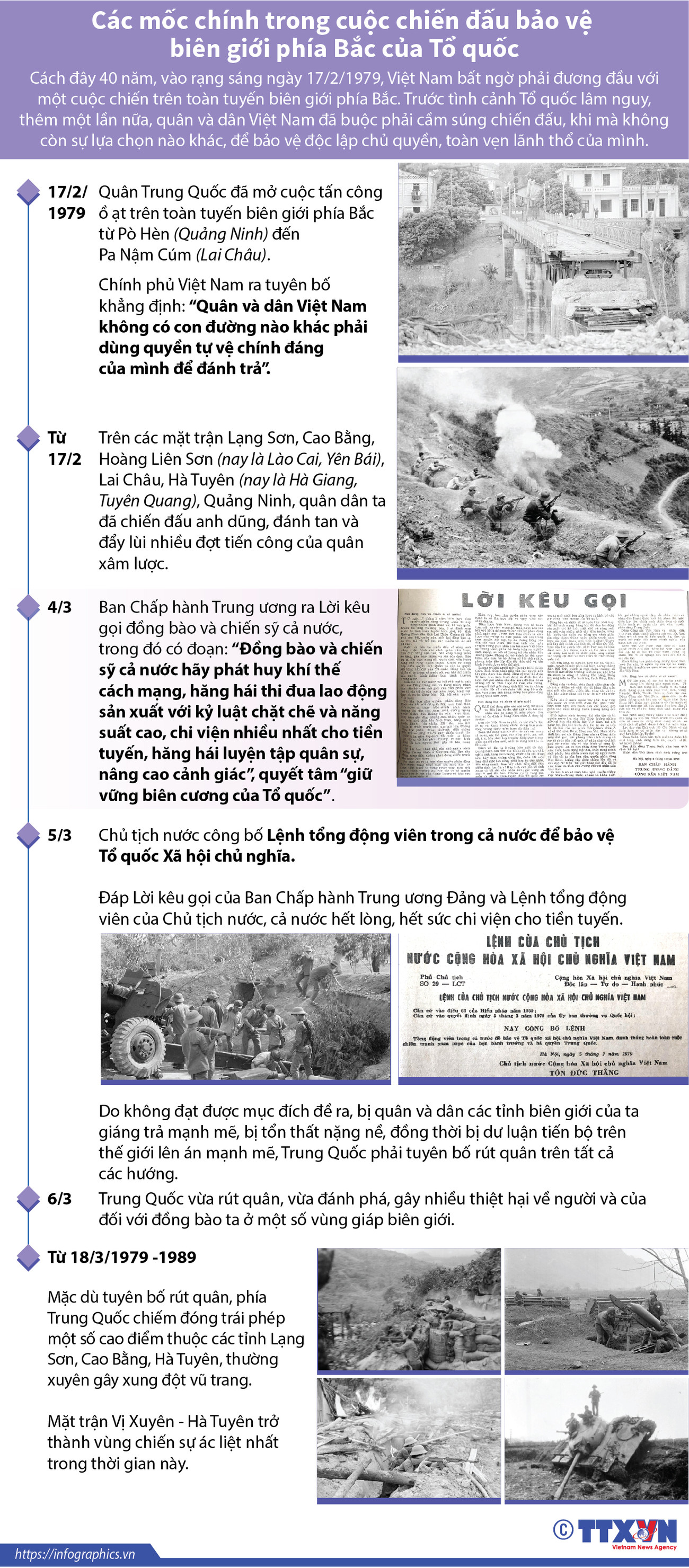 Khoảng thời gian này của 40 năm về trước, lịch sử của dân tộc Việt Nam ghi lại cuộc chiến ngắn nhưng khốc liệt nổ ra ngày 17-2-1979 khi Trung Quốc đưa quân tấn công Việt Nam trên toàn tuyến biên giới giữa hai nước, mở ra cuộc Chiến đấu bảo vệ biên giới phía Bắc chính nghĩa của quân và dân Việt Nam với sự hỗ trợ chí tình của Liên Xô. Cuộc chiến đấu đã kết thúc, nhưng dư âm của nó vẫn còn trong tâm trí những con người sống trong bối cảnh lịch sử đó, trong nghiên cứu khoa học quân sự.