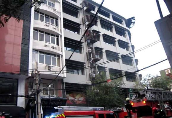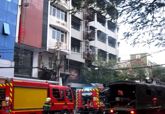 Thông tin ban đầu cho biết, ngọn lửa và khói xuất phát từ phòng vệ sinh ở tầng trệt, vốn là 1 siêu thị. Lửa không lớn nhưng bao tùm cả tòa nhà, làm cho những người có mặt tại đây phát hoảng. Lực lượng chữa cháy tại chỗ có dùng bình chữa cháy mini dập lửa, nhưng do khói dày đặc, cay mắt nên không tiếp cận được.