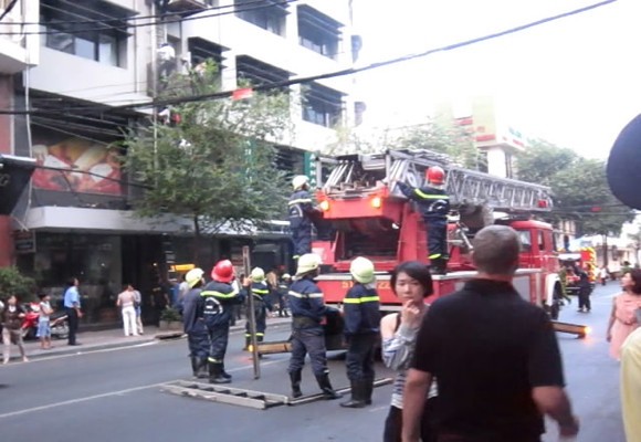 Ngay khi nhận tin báo, lực lượng chức năng địa phương lập tức phong tỏa hiện trường. Vài phút sau 5 xe chuyên dụng, cùng gần 50 cán bộ chiến sĩ của Phòng Cảnh sát PCCC quận 1 đã có mặt tại hiện trường. Đồng thời với phương án chữa cháy, lực lượng PCCC chuyên nghiệp đã “phóng” xe thang đưa những người đang đứng ở lan can các tầng lầu kêu cứu xuống đất an toàn.