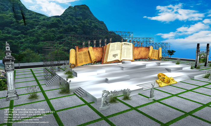 Phối cảnh thiết kế sân khấu chương trình Lễ kỷ niệm 1050 năm Nhà nước Đại Cồ Việt