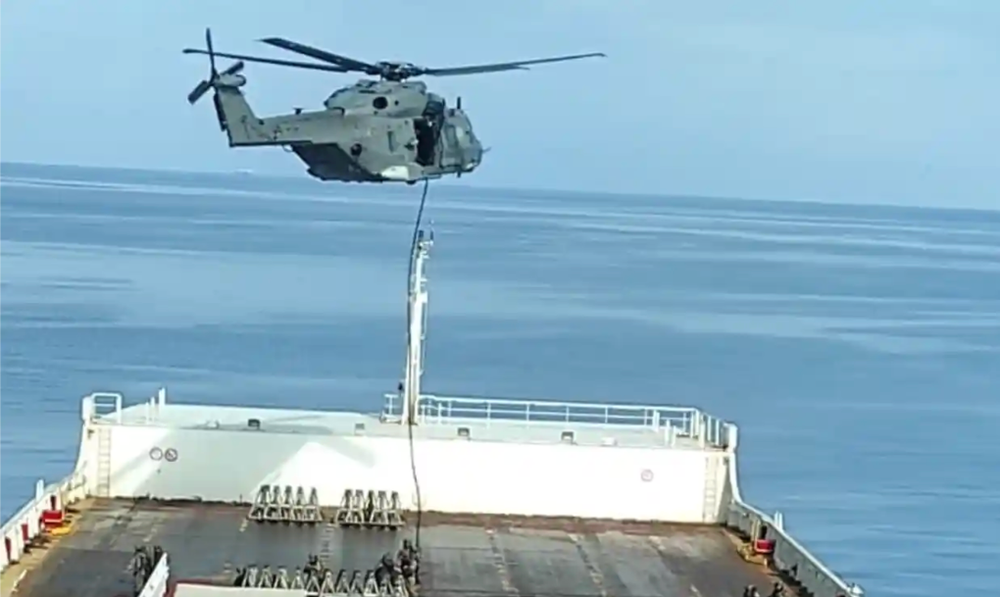 Toàn cảnh vụ lính đặc nhiệm Italy đổ bộ từ trực thăng SH-90A để giải cứu tàu hàng khổng lồ