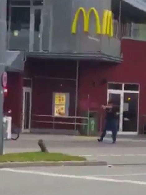 Đối tượng bước ra từ 1 cửa hàng Mc Donald và xả súng vào người dân