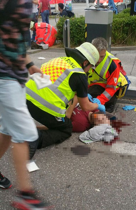 Một nạn nhân bị thương rất nặng đang được cứu giúp...