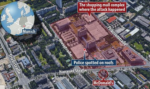 Khu vực xảy ra vụ xả súng ở Munich, Đức