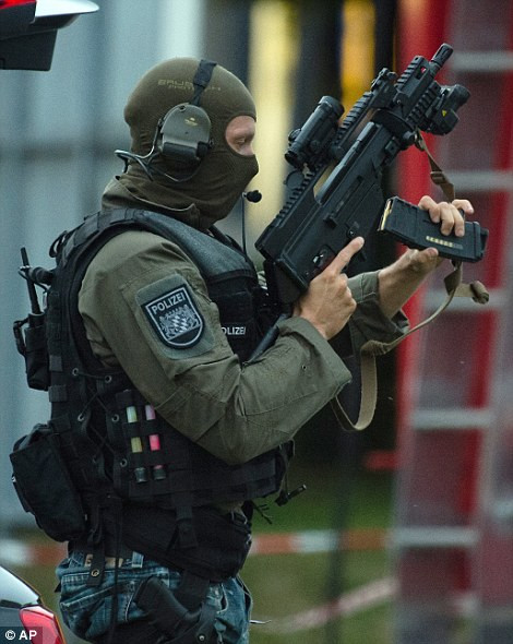 Cảnh sát Munich kiểm tra một người lạ mặt bên ngoài khu trung tâm thương mại sau vụ xả súng