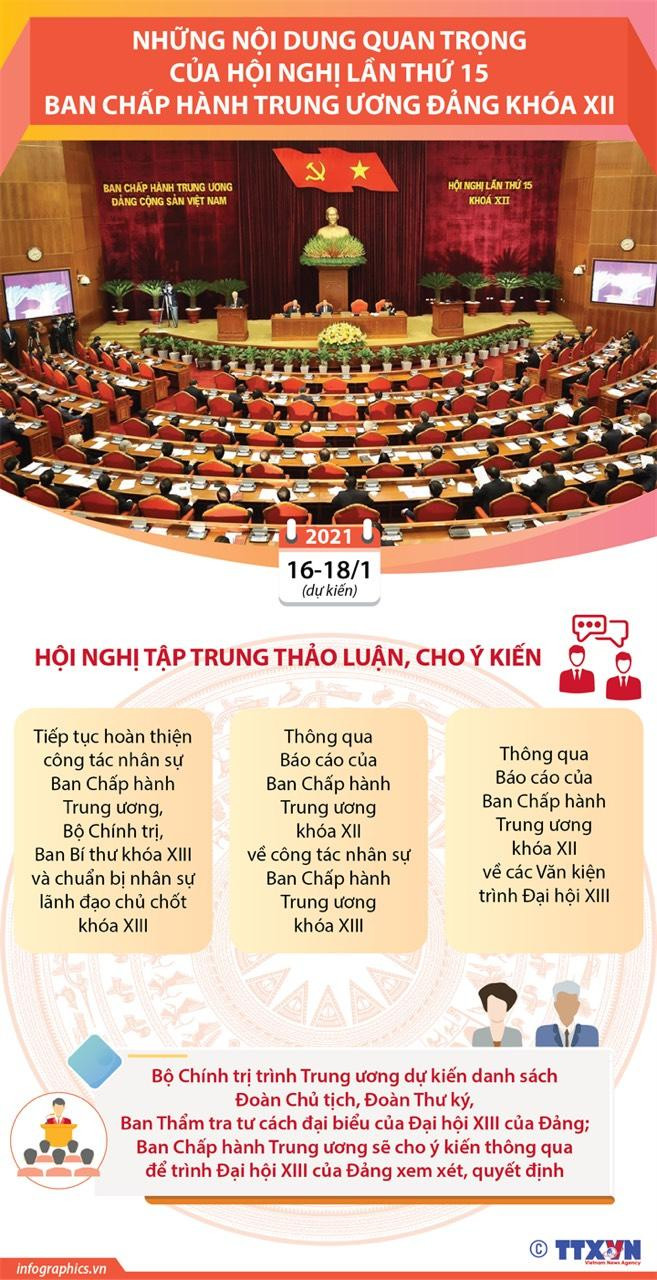 Theo Chương trình vừa được Trung ương thông qua, tại Hội nghị lần này, chúng ta sẽ bàn về các nội dung: Tiếp tục hoàn thiện công tác nhân sự Ban Chấp hành Trung ương, Bộ Chính trị, Ban Bí thư khóa XIII và chuẩn bị nhân sự lãnh đạo chủ chốt khóa XIII; thông qua Báo cáo của Ban Chấp hành Trung ương khóa XII về công tác nhân sự Ban Chấp hành Trung ương khóa XIII; thông qua Báo cáo của Ban Chấp hành Trung ương khóa XII về các Văn kiện trình Đại hội XIII; thông qua dự kiến danh sách Đoàn Chủ tịch, Đoàn Thư ký, Ban Thẩm tra tư cách đại biểu của Đại hội XIII; cho ý kiến về Báo cáo tổng kết công tác tài chính đảng nhiệm kỳ 2016 - 2020.