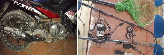 Hung khí cài dọc thân xe máy; và đồ nghề, công cụ trộm cắp của các đối tượng