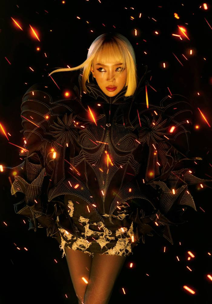 Bên cạnh đó, tạo hình trang phục của nữ ca sĩ cũng được biến hoá bởi những thương hiệu, tên tuổi nổi bật trong làng thời trang Việt Nam như La Lune - brand thời trang Việt xuất hiện trong các MV của BLACKPINK, Aespa, stylish Kelbin Lei, NTK Lê Thanh Hoà.