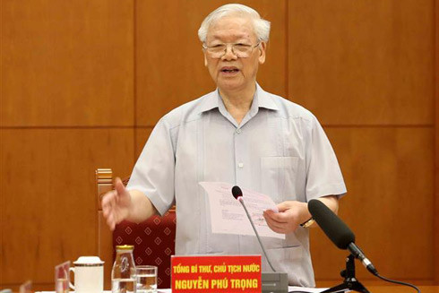 Đồng chí Nguyễn Phú Trọng, Tổng Bí thư, Chủ tịch nước phát biểu kết luận cuộc họp