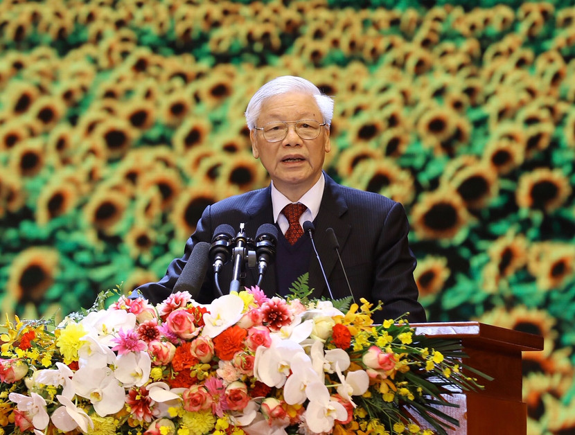 "Một đảng cách mạng chân chính có đường lối đúng, có tổ chức chặt chẽ, có đội ngũ cán bộ, đảng viên trong sạch, gương mẫu, tận tuỵ, gắn bó máu thịt với nhân dân, được nhân dân ủng hộ, thì đảng đó có sức mạnh vô địch, không thế lực nào ngăn cản nổi trên con đường dẫn dắt dân tộc đi lên", Tổng Bí thư, Chủ tịch nước Nguyễn Phú Trọng khẳng định.