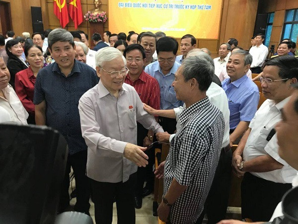Sáng nay, 15-10, trong khuôn khổ chương trình tiếp xúc cử tri trước kỳ họp thứ 8 - Quốc hội khóa XIV, Tổng Bí thư, Chủ tịch nước Nguyễn Phú Trọng cùng các đại biểu Quốc hội (ĐBQH) đơn vị bầu cử số 1 thành phố Hà Nội đã tiếp xúc cử tri 3 quận: Ba Đình, Hoàn Kiếm, Tây Hồ.