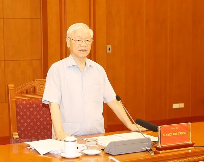 | Tổng Bí thư Nguyễn Phú Trọng phát biểu chỉ đạo cuộc họp |