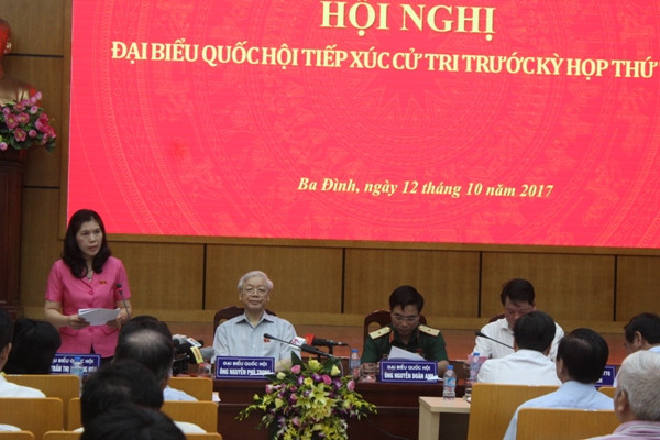 Là cử tri phát biểu đầu tiên tại buổi tiếp xúc với Tổng Bí thư, cử tri Nguyễn Quốc Thước (phường Vĩnh Phúc) – cũng là một vị Trung tướng quân đội và nguyên ĐBQH – nêu rõ, nhìn vào thực tiễn hiện nay, dù những người có tư tưởng tiêu cực, khuynh hướng bi quan đi chăng nữa thì cũng không thể không thừa nhận rằng Hà Nội, đất nước đang có những thay đổi, phát triển khởi sắc.