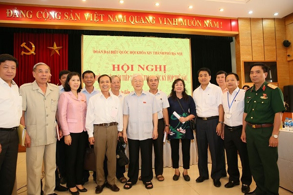 Vấn đề được rất nhiều cử tri 2 quận Hoàn Kiếm, Ba Đình (Hà Nội ) quan tâm tại buổi tiếp xúc cử tri trước kỳ họp thứ 6-Quốc hội khóa XIV của Tổng Bí thư Nguyễn Phú Trọng và các đại biểu Quốc hội thành phố Hà Nội sáng nay chính là việc Ban Chấp hành Trung ương đã nhất trí giới thiệu Tổng Bí thư Nguyễn Phú Trọng để Quốc hội bầu làm Chủ tịch nước.