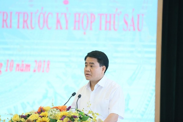 Chủ tịch UBND TP Hà Nội Nguyễn Đức Chung phát biểu tại buổi tiếp xúc cử tri