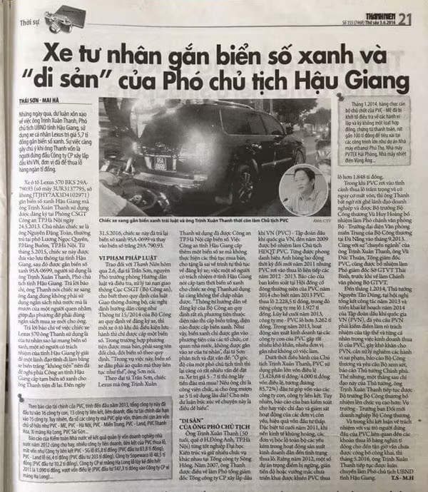 Bài báo “Xe tư nhân gắn biển số xanh và “di sản” của Phó Chủ tịch Hậu Giang”