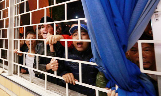 Trên khán đài, nhiều CĐV Hải Phòng thóa mạ trọng tài, đội khách