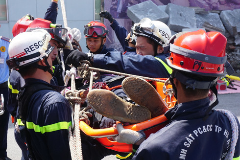 Lực lượng cứu nạn, cứu hộ Cảnh sát PCCC thành phố Hà Nội diễn tập cứu hộ, cứu nạn