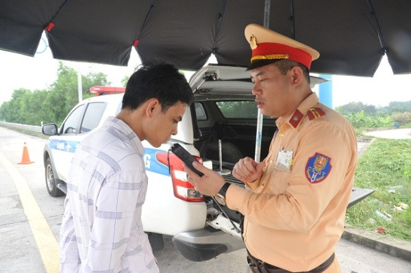 CSGT kiểm tra nồng độ cồn đối với các lái xe trên cao tốc
