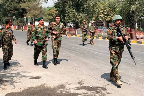 Các binh sĩ quân đội Afghanistan đến địa điểm xảy ra vụ nổ bom xe ở Kabul, Afghanistan, ngày 5 - 9 - 2019 (Ảnh AP)