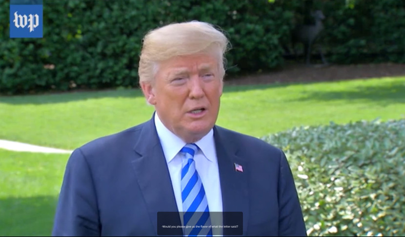 Khi một nhà báo hỏi liệu tổng thống có thể chỉ cho biết ý tứ của bức thư nói gì? Tổng thống Trump nói: “Đó là một bức thư rất thú vị. Tại một thời điểm thích hợp nào đó, có lẽ tôi sẽ công bố”.