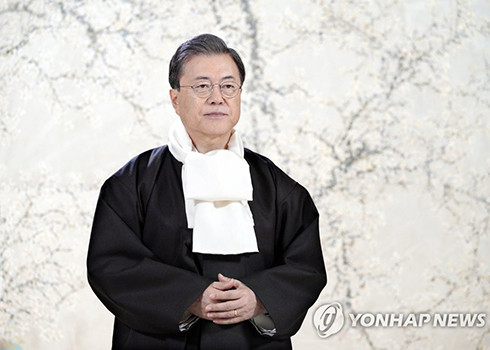 Tổng thống Moon Jae-in, trong trang phục truyền thống Hàn Quốc, gửi lời chúc Tết tới người dân trong một đoạn clip được Phủ Tổng thống phát hành.