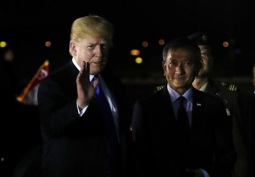 Bước xuống từ Không lực một, Tổng thống Mỹ được chào đón bởi Ngoại trưởng Singapore Vivian Balakrishnan. Ông Trump cũng chỉ trả lời ngắn với báo giới rằng ông cảm thấy “rất tốt” với hội nghị sắp tới.