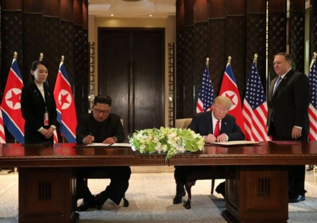 Trong tuyên bố chung được ký kết giữa tổng thống Trump và nhà lãnh đạo Kim Jong-un tại hội nghị thượng đỉnh, Triều Tiên cam kết "phi hạt nhân hoàn toàn" bán đảo Triều Tiên để đổi lấy bảo đảm an ninh từ Mỹ. Tuyên bố này chỉ ra phương thức hoặc tiến trình để thực hiện. Các chi tiết sẽ được thực hiện trong các cuộc đàm phán tiếp theo.