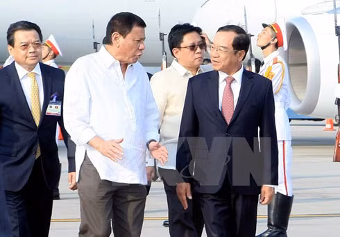 Lễ đón Tổng thống Philippines Rodrigo Duterte tại sân bay Quốc tế Nội Bài. Ảnh: Phạm Kiên - TTXVN
