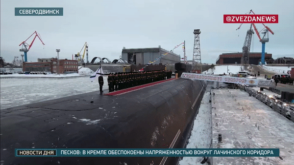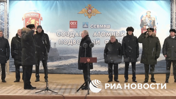 ANTD.VN - Tổng thống Putin trực tiếp dự lễ biên chế tàu ngầm hạt nhân Aleksandr III thuộc Đề án 995A "Borei-A" và Krasnoyarsk thuộc Đề án 855M "Yasen-M" khi thăm thành phố Severodvinsk.