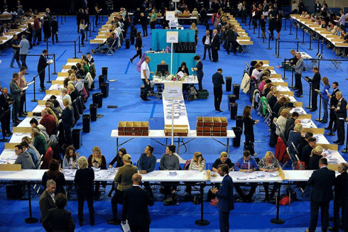 Hoạt động tại trung tâm kiểm phiếu Glasgow, Scotland, Anh quốc hôm 8-6