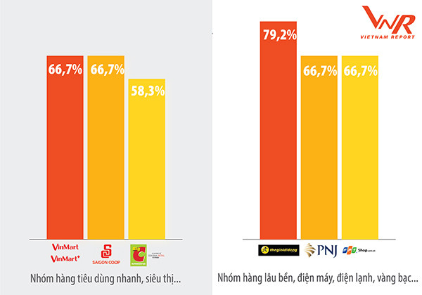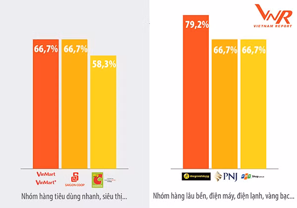 Trong bối cảnh đó, hai doanh nghiệp bán lẻ Việt Nam là Vincommerce, với hệ thống VinMart và VinMart+, và Thế giới di động, gắn liền với thương hiệu Điện máy xanh, là hai cái tên có điểm số uy tín hàng đầu và giữ vững được vị trí đầu bảng trong hai năm liên tiếp. Khảo sát người tiêu dùng và chuyên gia cho thấy, VinMart được đánh giá rất cao về sự đa dạng hàng hóa, chất lượng của sản phẩm và khâu hậu mãi, chăm sóc khách hàng trong khi Thế giới di động được đánh giá cao về tài chính và thương hiệu.