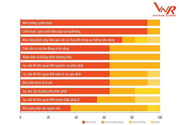 Trong khảo sát các doanh nghiệp bán lẻ do Vietnam Report thực hiện tháng 9/2019, các yếu tố liên quan đến Môi trường cạnh tranh, Chiến lược cạnh tranh được doanh nghiệp đánh giá là những yếu tố có ảnh hưởng rất đáng kể đến hoạt động sản xuất kinh doanh của doanh nghiệp toàn ngành nói chung trong ít nhất 3 năm tới.