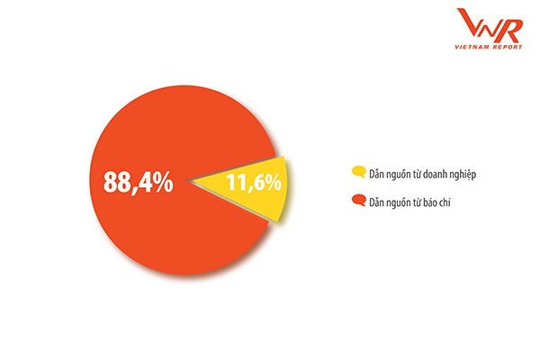 Về chất lượng thông tin (tỷ lệ chênh lệch tích cực – tiêu cực trên tổng số tin), 48,4% số doanh nghiệp đạt được tỷ lệ an toàn 10%. Về nguồn gốc thông tin, tỷ lệ thông tin được dẫn nguồn từ doanh nghiệp hoặc các lãnh đạo cấp cao của doanh nghiệp còn rất khiêm tốn, 11,6%, trong khi nguồn tin từ báo chí chiếm tỷ lệ áp đảo với 88,4%.