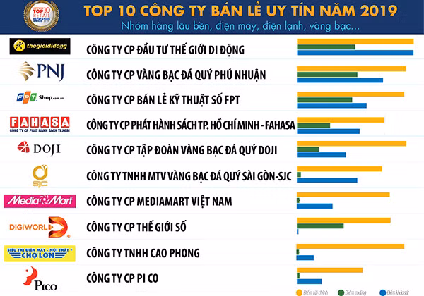 Danh sách Top 10 Công ty bán lẻ uy tín năm 2019 - Nhóm hàng lâu bền, điện máy, điện lạnh, vàng bạc