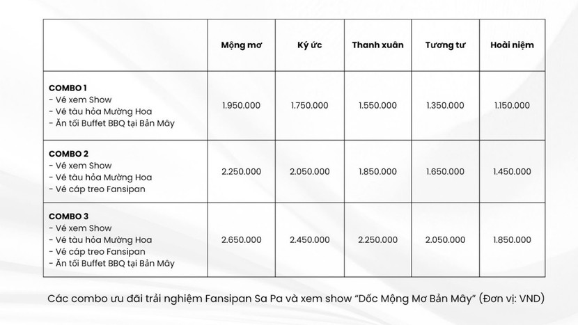 Với combo 3 hạng vé Mộng Mơ, khán giả có thể tiết kiệm đến gần 800.000 VND tiền xem show, di chuyển, kết hợp du lịch và ăn uống thỏa thích. Đây là cơ hội hiếm có, đặc biệt là trong dịp cao điểm du lịch nghỉ lễ 2/9.