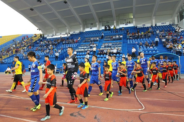Cùng với đó, các em còn được đồng hành với các cầu thủ câu lạc bộ Hà Nội và Becamex Bình Dương ra sân thi đấu.
